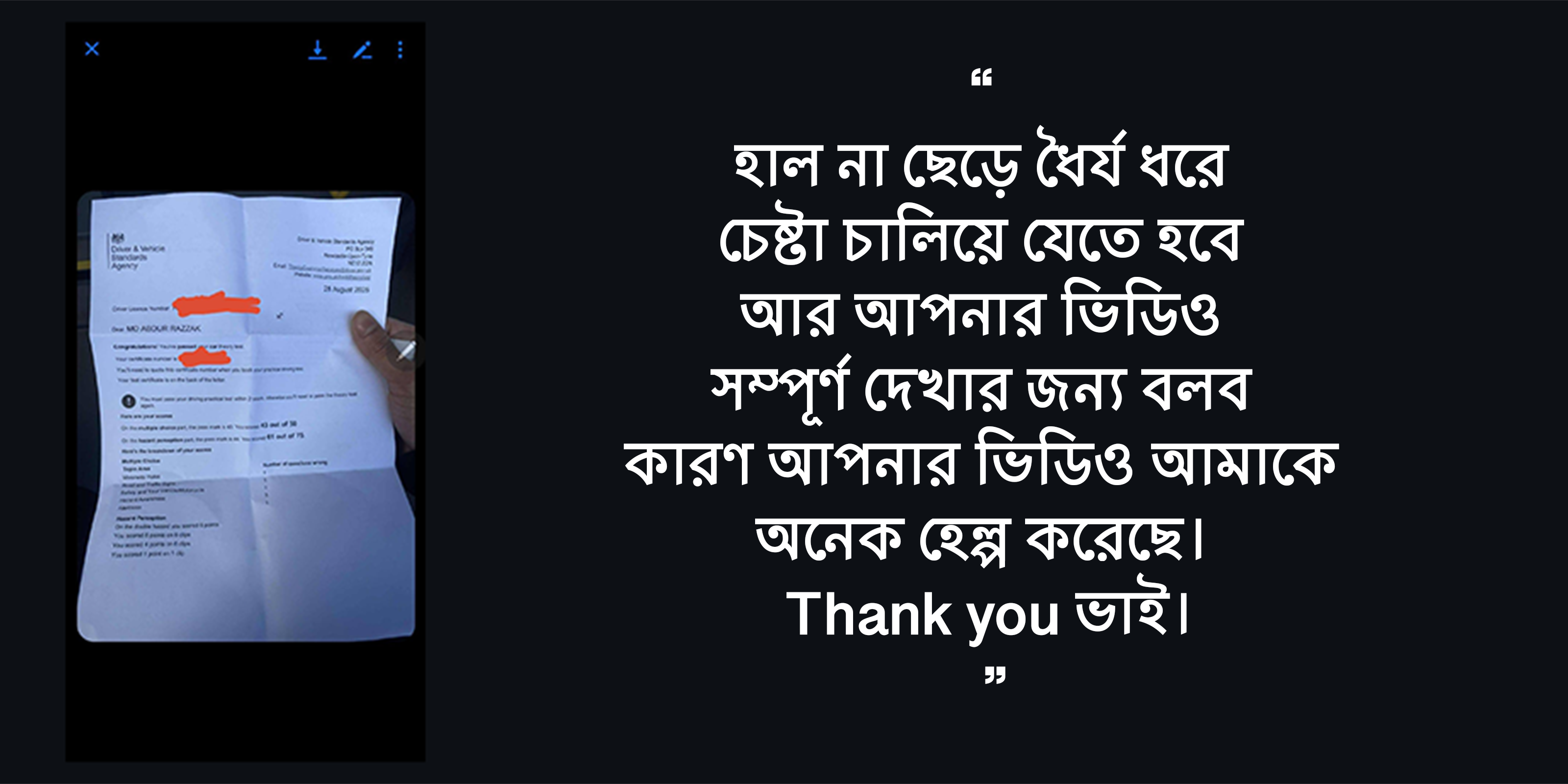 রহিম সাহেব UK তে ড্রাইভিং থিওরি পরীক্ষায় একাধিকবার ফেল করেছেন। কখনো ৪১, কখনো ৪২ মার্ক… কিন্তু ৪৩ পাশ মার্ক তুলতে পারছেন না! ইংরেজিতে দুর্বল, প্রশ্ন বুঝতে কষ্ট হয়। মক টেস্টে ৫০ পেলেও রিয়েল পরীক্ষায় গিয়ে মাথা গুলিয়ে যায়। এত চেষ্টা, এত সময় তবু ফলাফল শূন্য!